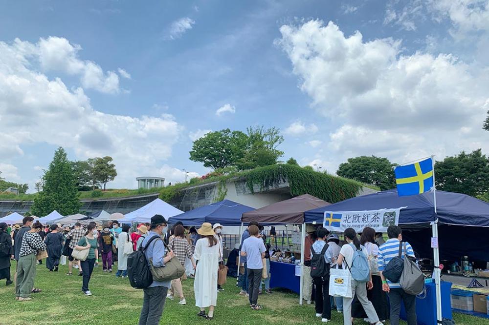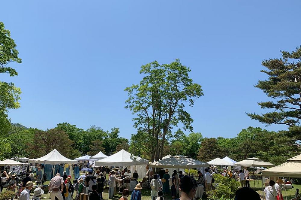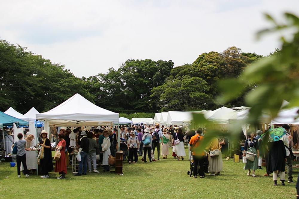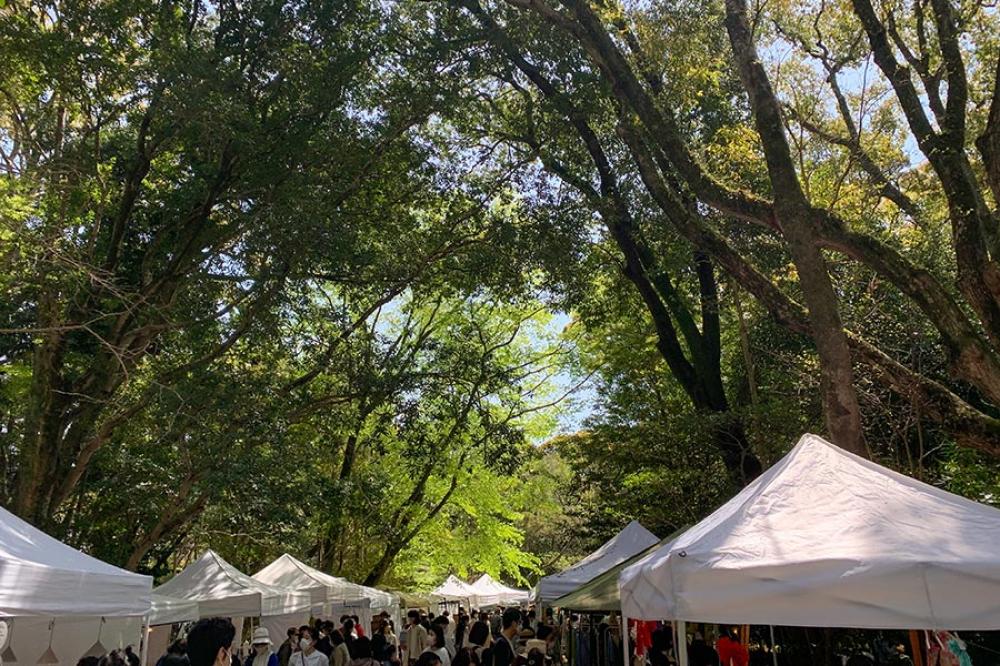 作家さんのうつわや生活雑貨、バッグ、洋服など暮らしに根差したものを中心に、地元のイタリアンやカフェによる素材を生かした総菜や焼き菓子・パンなども販売され、緑豊かな境内でのんびり、ピクニック感覚で楽しめます