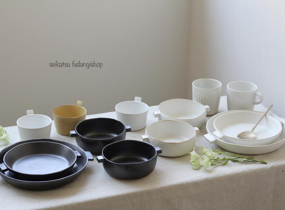 今回は、生活普段議shopでも人気の直火もOKの耐熱シリーズのグラタン皿、陶板とマグカップやボウル、カップなどが届いています。