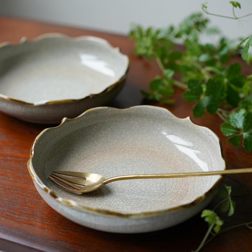 こちらは、貫入が美しい花の形をした浅鉢。
