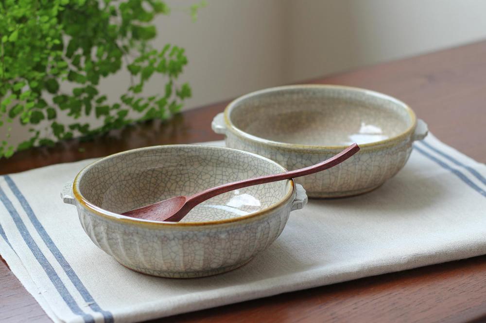 原 孝一さんのうつわは、貫入が美しく、優しい色合いで、料理の彩りを引き立たせてくれます。