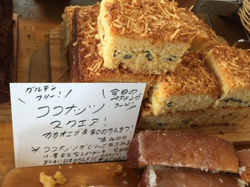 ココナッツスクエアとコーンミールアーモンドブレッド ラベンダー入りとグアテマラ ロスナードスコーヒーをいただきました。
