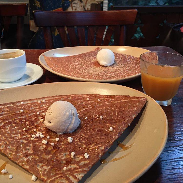 写真は、そばのハチミツ、そばのアイス、そばのスフレのモンサラザン と ブラウンシュガーとココナッツアイスをクレープからガレットに変更して注文。 それぞれの甘みが違って美味しいです。 ※コンタミネーションあります。