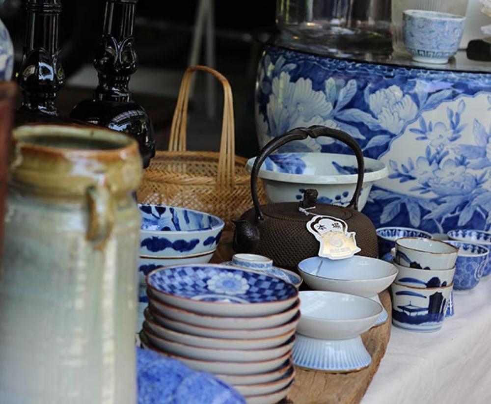 和骨董、西洋骨董から、仏教美術まで、さまざなジャンルの骨董屋さんが武相荘の門前に所狭しと立ち並びます。