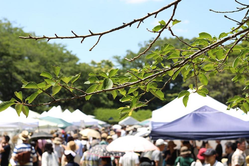 器や生活雑貨、バッグ、洋服など暮らしに根差したものを中心に、地元のイタリアンやカフェによる素材を生かした総菜や焼き菓子・パンなども販売され、緑豊かな境内でのんびり、ピクニック感覚で楽しめます。