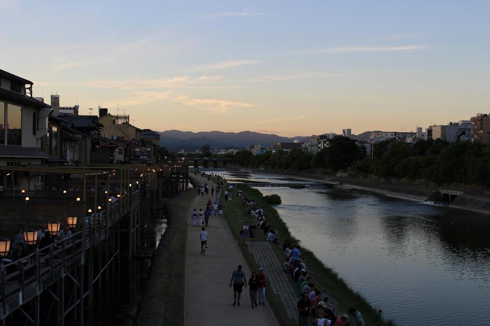 昔ながらの先斗町の狭い路地裏を通り、予約を入れた鴨川の納涼床で日が暮れるまで涼をとりながらの食事。