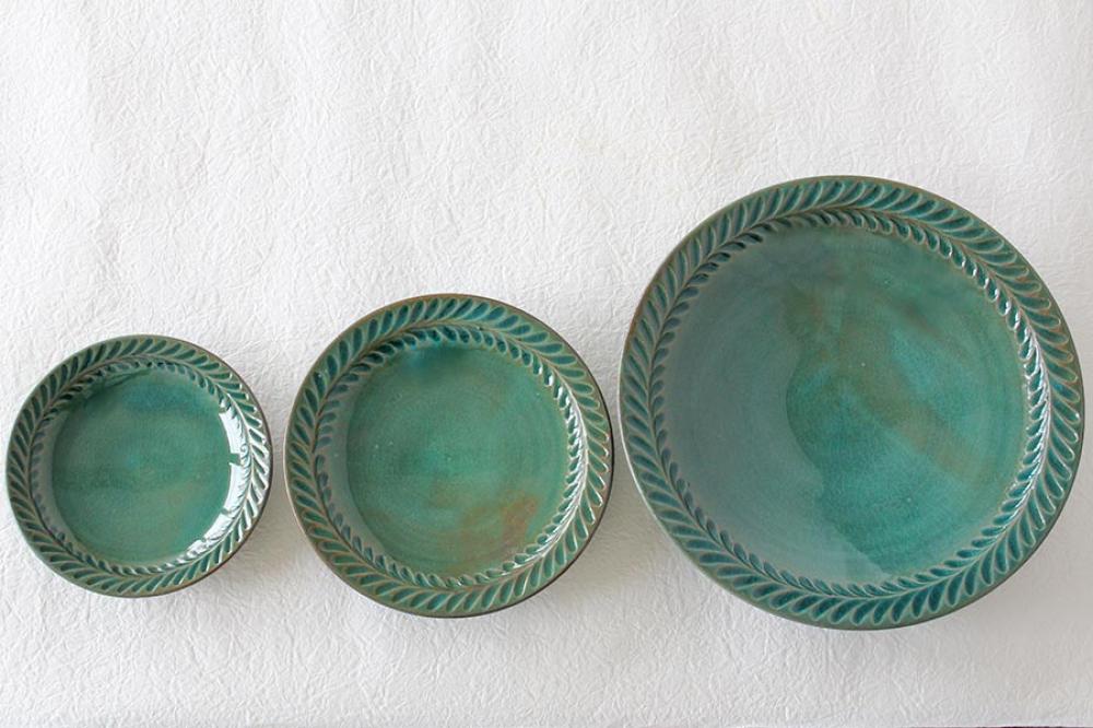 市野耕さんのトルコブルーの葉紋皿